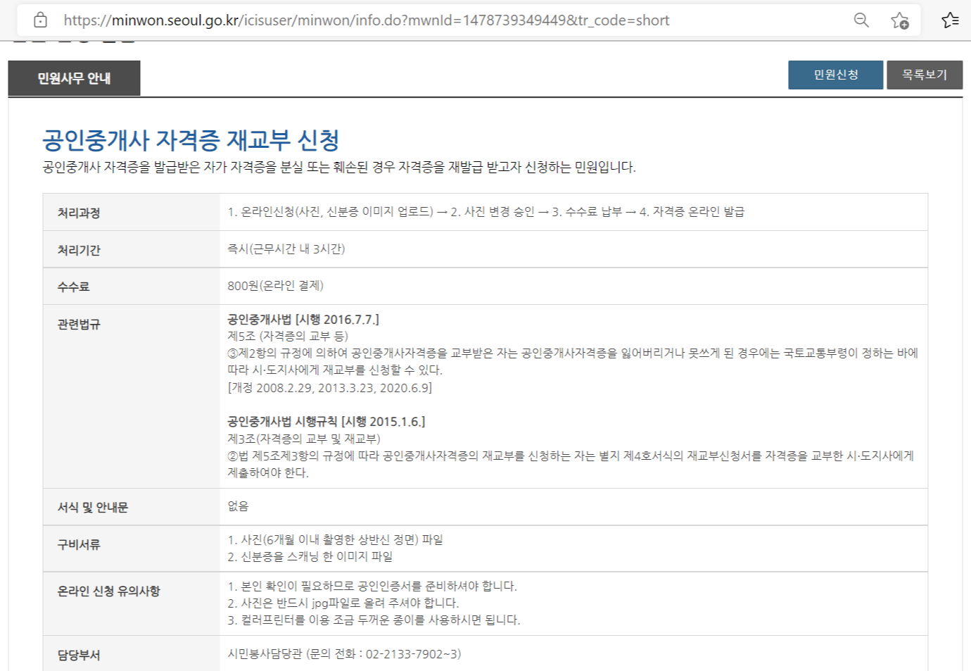 2. 서울시의 경우 서울시청 온라인민원으로 신청도 가능합니다.
