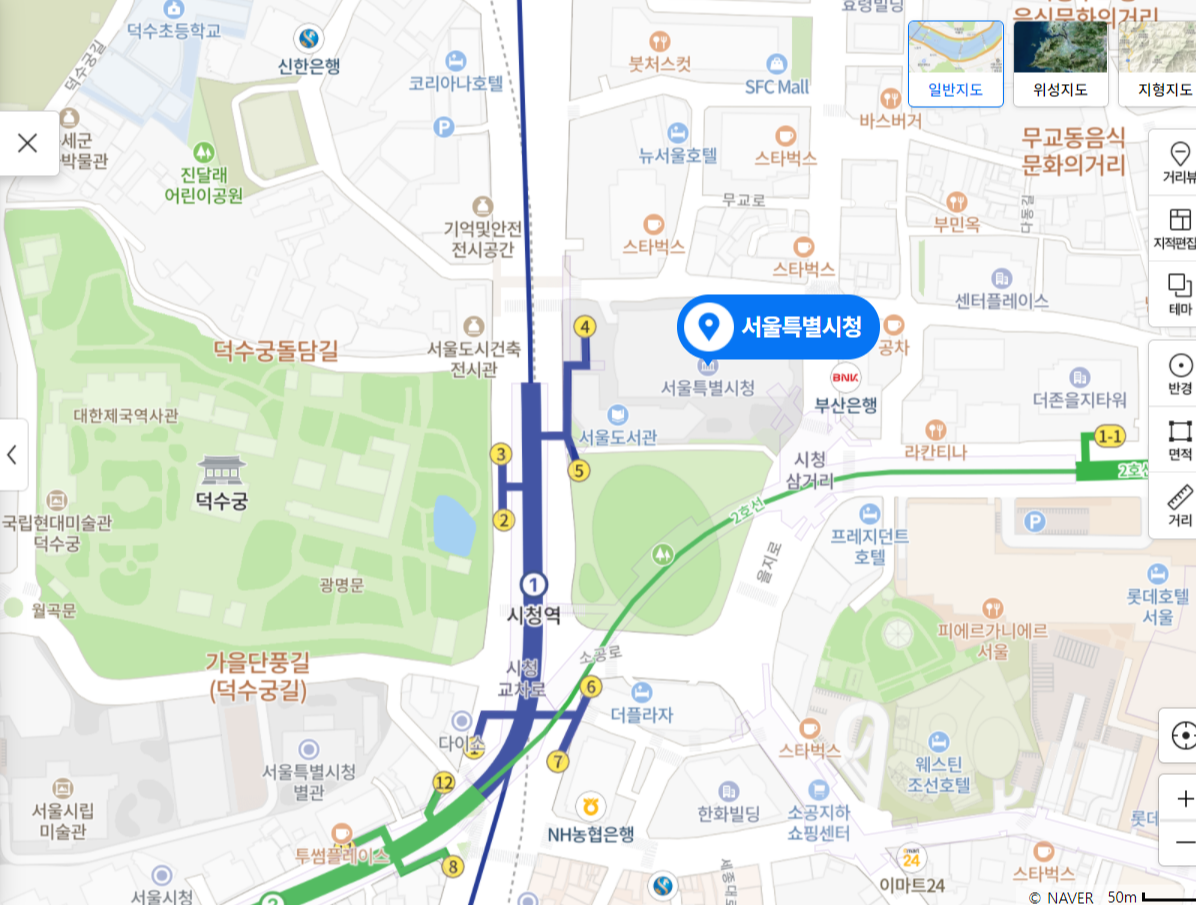 서울시청은 시청역 1,2호선라인 4번출구에 위치해있어요~!