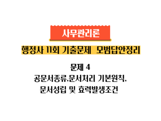 문제 4. 「행정업무의 운영 및 혁신에 관한 규정」상 공문서의 종류를 설명하고, 문서처리의 기본원칙과 문서의 성립 및 효력발생의 조건을 기술하시오. (20점)