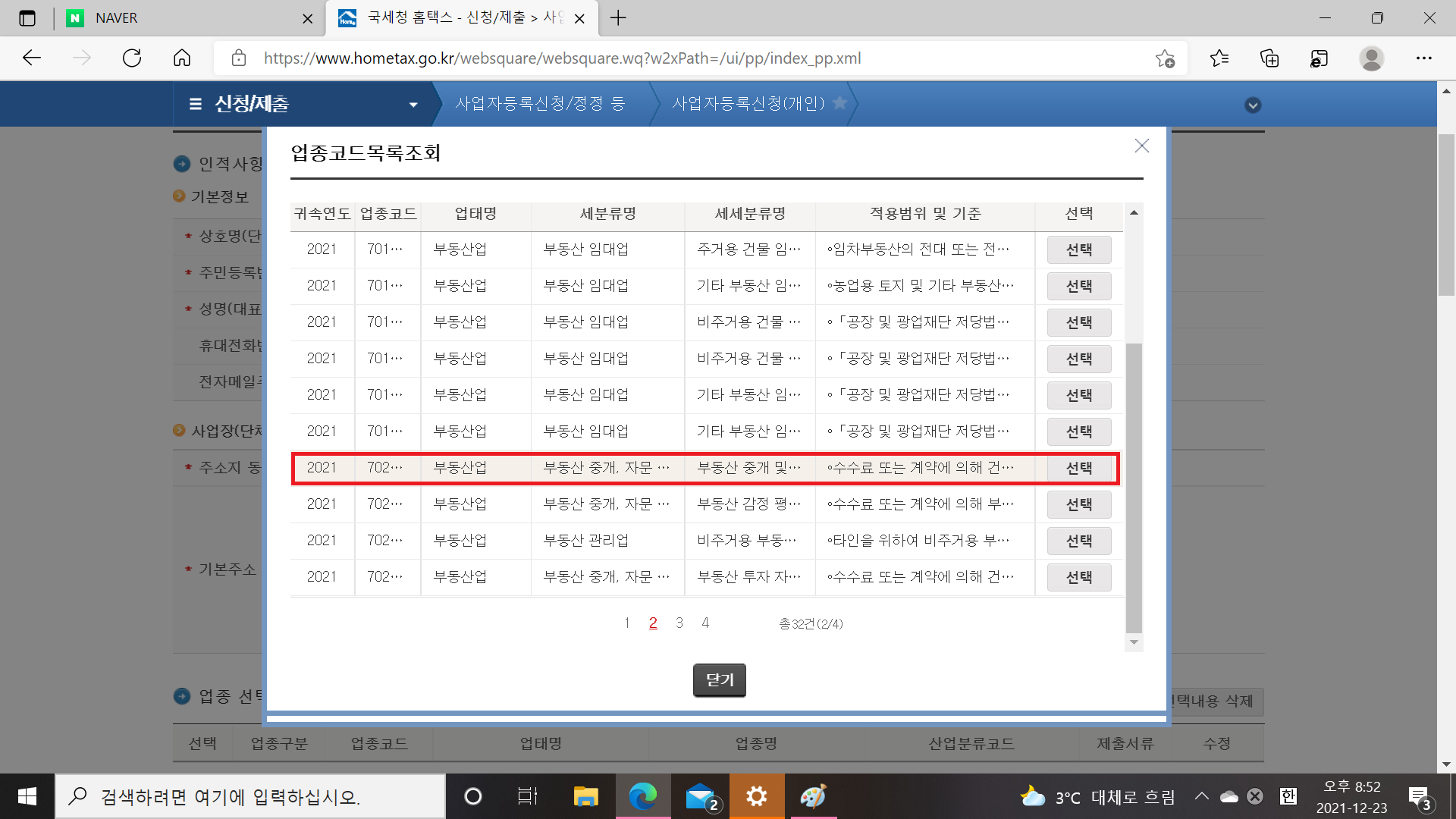 거기서 2페이지 부동산 중개 및대리업을 선택하시면 됩니다.